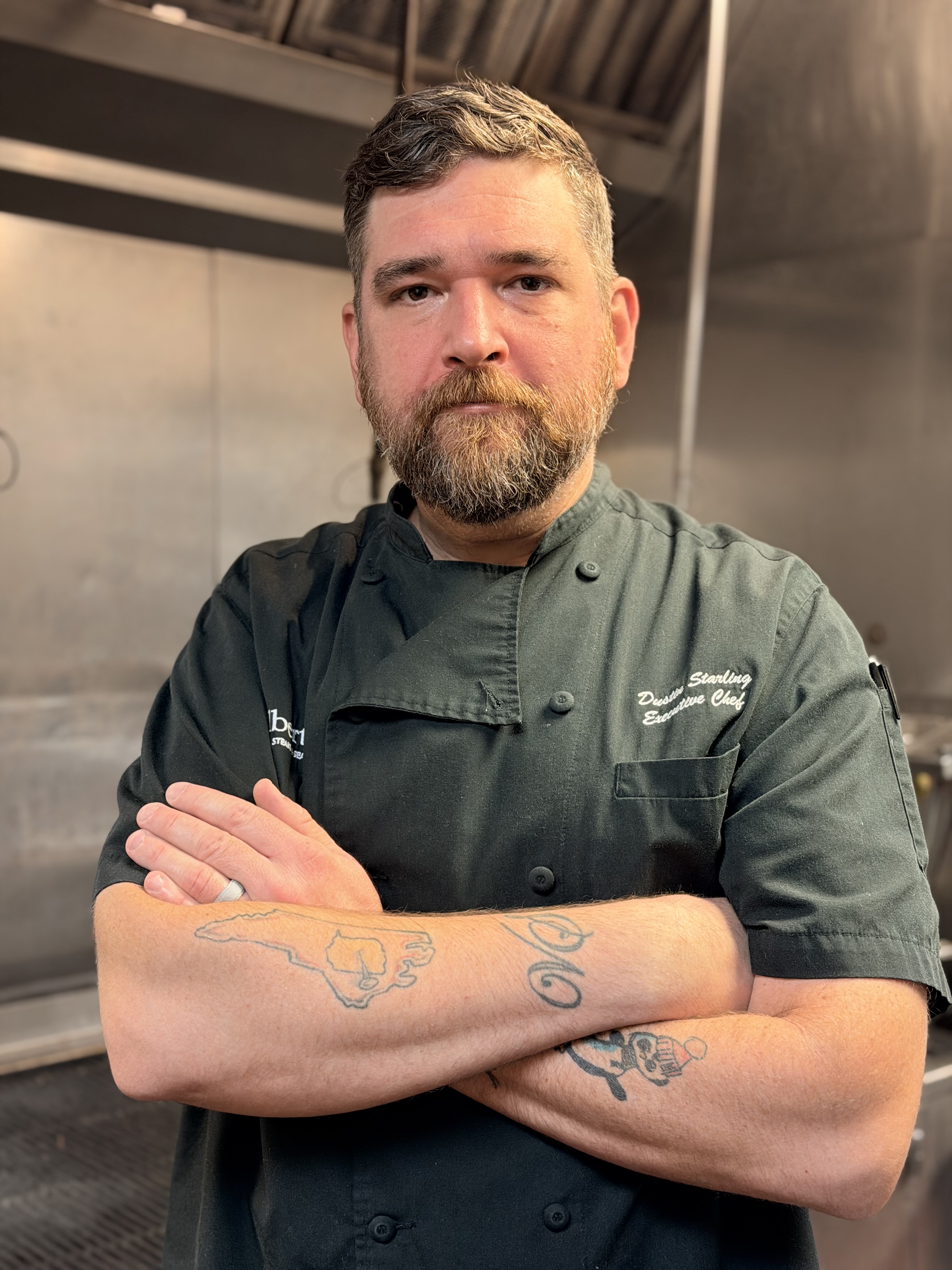 For Executive Chef Dustin Starling, the heart of great cooking lies in tradition, technique, and the ability to elevate humble ingredients with passion and purpose. Born with deep culinary roots in North Carolina, Dustin draws inspiration from defining family influences that continue to shape his cooking today. His grandmother’s soulful Southern dishes — steeped in the flavors of the Piedmont and tobacco country — introduced him to the art of Southern hospitality and refined comfort food. Her natural use of classic French techniques, often without formal recognition, instilled in him an early appreciation for craftsmanship and grace in the kitchen.